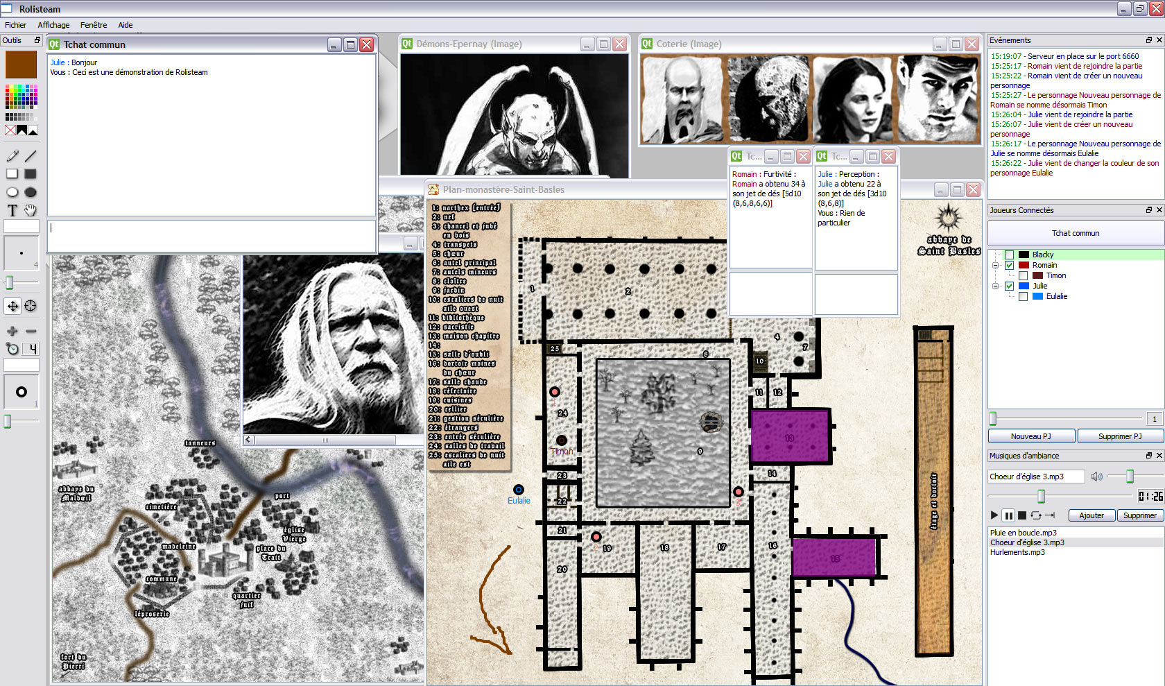 Capture d'écran d'une campagne sous Rolisteam 1.03